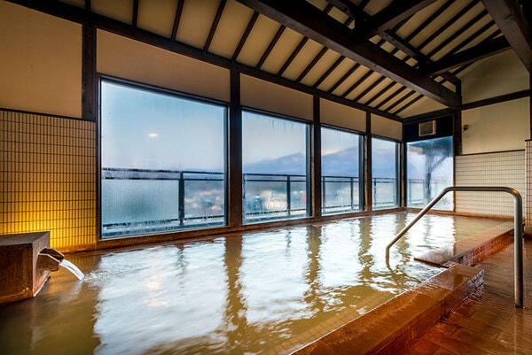 男女それぞれ露天風呂付き大浴場があり、浴場からは蔵王の美しい山並みを正面から見ることができる。大浴場にはサウナ・水風呂も併設されている。