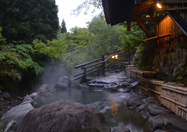 すべて源泉かけ流しの天然の湯。情緒ある混浴露天風呂や眼下に田の原川を臨む川風呂。また神秘的な雰囲気のある洞窟風呂。日常を忘れ静かにゆっくり過ごす時間を楽しめる。