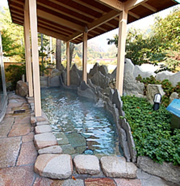 内湯は広い窓からアルプスの山々の望みながらゆっくり温泉を満喫。薬湯やジェット風呂などバラエティ豊富な温泉を堪能。露天風呂は大自然を感じながらゆっくり寛げる。また、空とアルプスの境界線がとても美しく、心身ともに癒される時間を過ごせる。