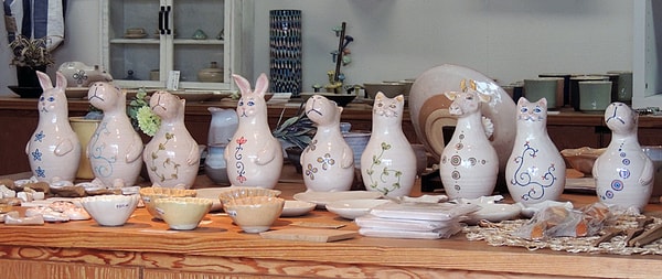 芸術性の高い萩の作家の茶陶などを展示販売する本館と、普段使いの食器類を中心に和雑貨を揃える彩陶庵ロフトに分かれており幅広い品揃え。とても可愛らしい作品も多く、ちょっとしたプレゼントや萩のお土産にもピッタリ!
