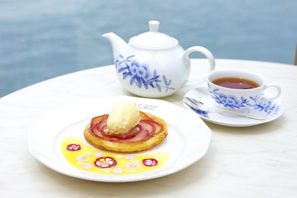 ロザージュ伝統のあつあつりんごパイ ~バニラアイス添え~ 単品 1800円 ティーセット(ポットサービス)2600円、ロザージュ フレンチトースト 単品 1600円 ティーセット(ポットサービス)2400円