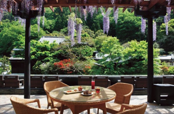 吉奈温泉が愉しめる足湯を併設したベーカリー&カフェ。天然酵母や国産小麦使用など、拘ったコクのあるパンやお土産に最適な焼き菓子などを取り揃えている。ベーカリーには、焼きあがったパン約30種類以上が並べられており、緑に囲まれた開放的なテラス席で美味しいホテルメイドのパンとコーヒー、スイーツなどを楽しむことができる。また、4月下旬から5月上旬までは、うっとりとするほど色鮮やかな藤がテラスを彩る。足湯を楽しみながらパンを味わうことができるため、地元のパン好きを始め、観光客にも人気を集めているスポットだ。