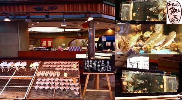魚とやは熱海駅前の平和通り商店街にある。伊豆近海でとれる海産物を自家製法で「ひもの」にし、旬の味わいを人々に届けてくれる。自家製法・天然良水・独自の天日干しが作り出すひものたちは絶妙な味わいで、地元のみならず、観光客の中にもファンが多い。沼津・小田原の大型市場へ足を運び、直接仕入れる素材を一環製造・管理しているため、購買層に無理のない価格での提供を実現してくれているのも嬉しいスタイルだ。ひもの以外では塩辛に定評があり、「魚とやの塩辛」も見逃せない。魚好きならチェック必須の店である。