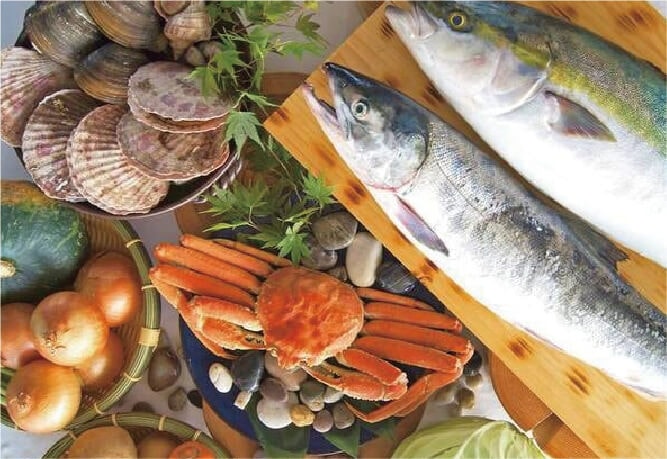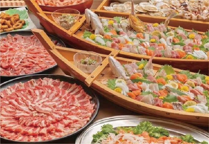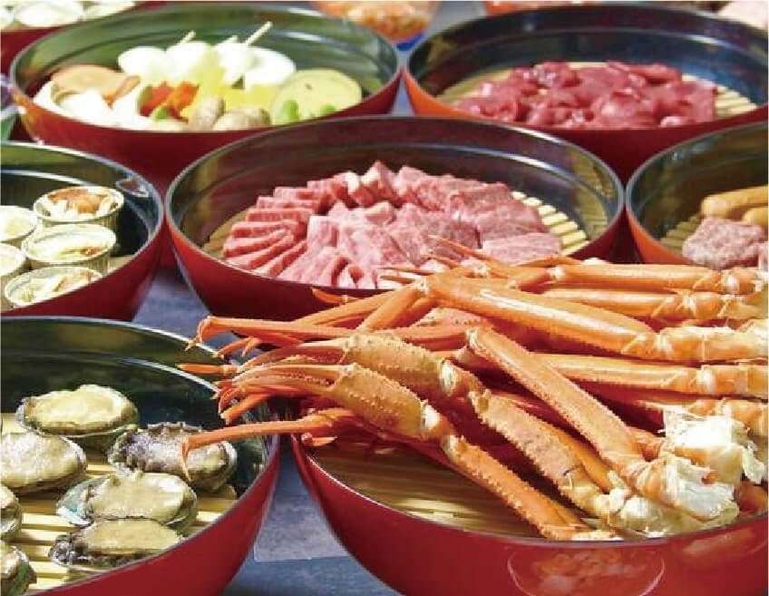 蟹脚、国産和牛、お刺身等