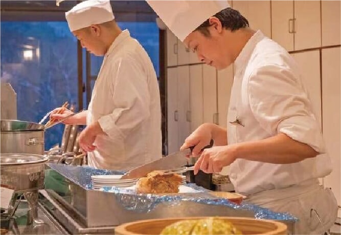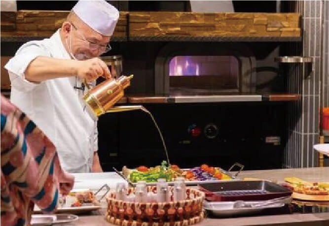 シェフが仕上げるライブキッチンも魅力
