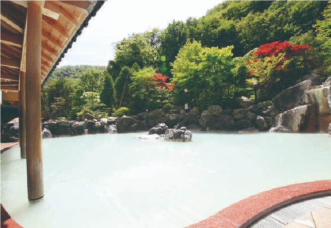 絶景露天で乳白色の名湯満喫